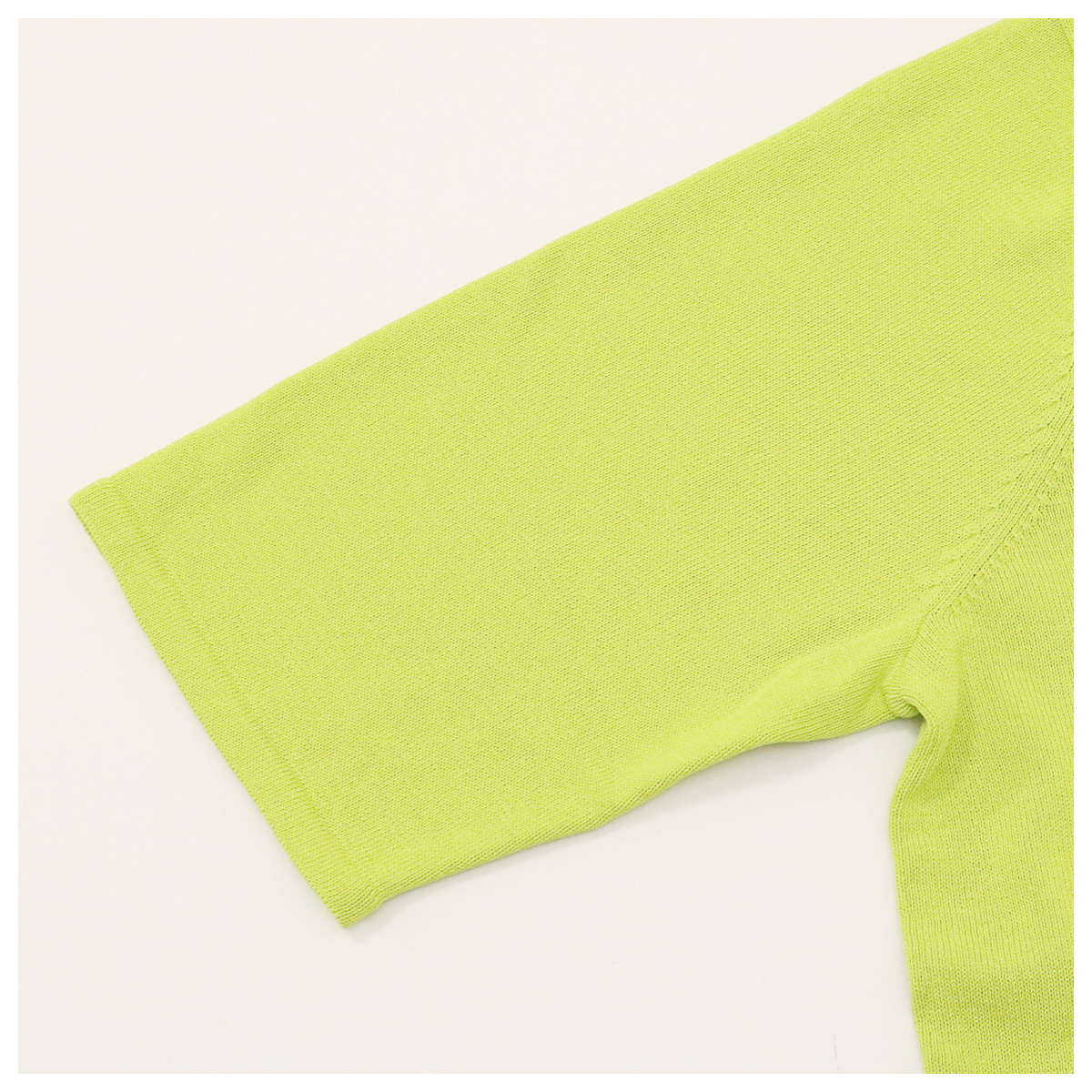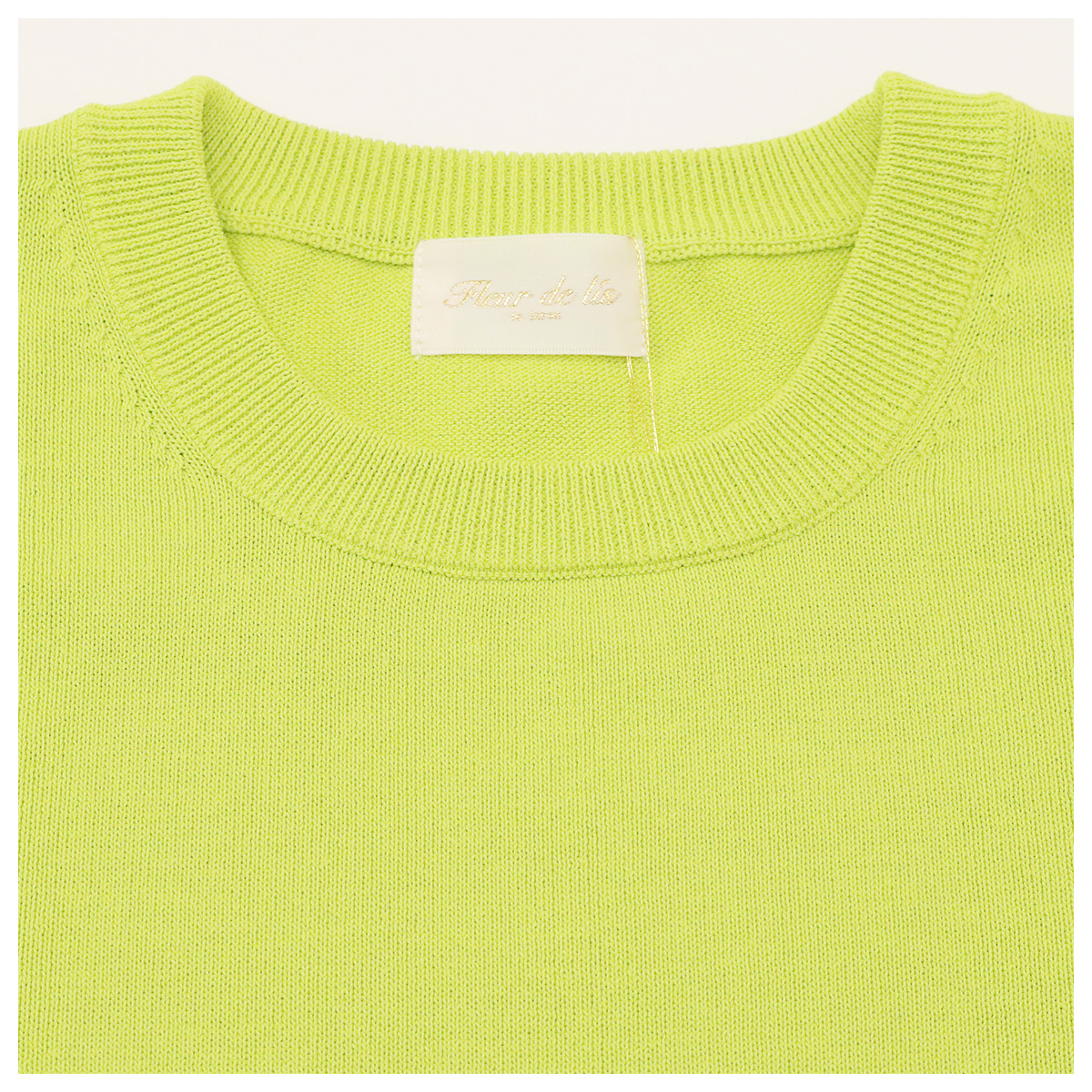 ショート丈クルーネック5分袖ニットトップス 24 イエローグリーン【Fleur de lis(フラデリ)】