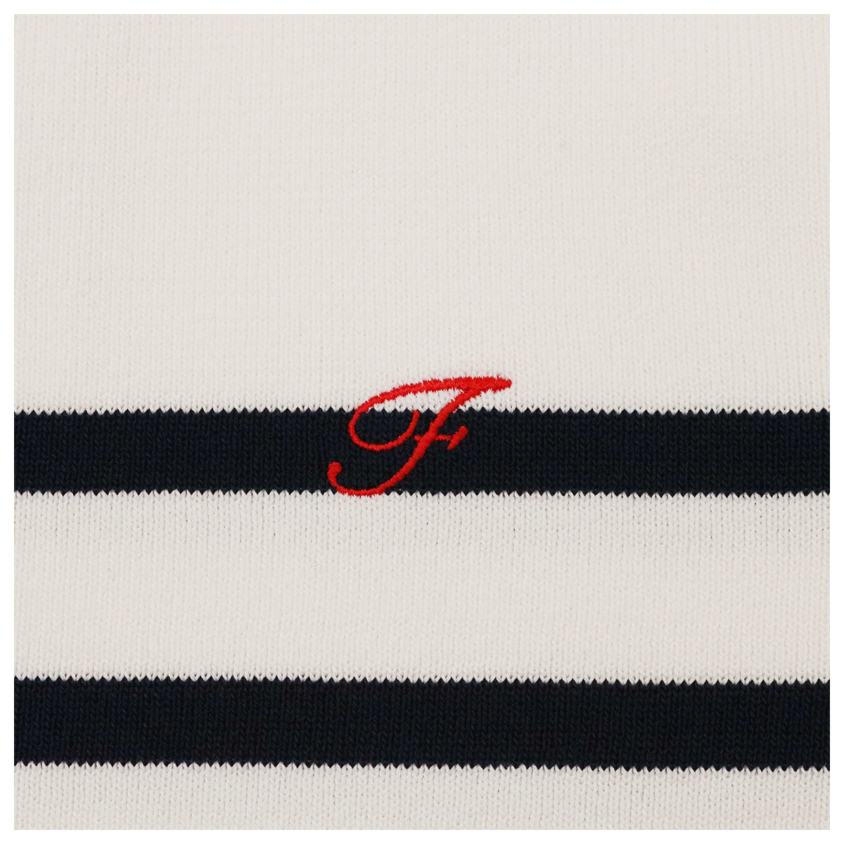 クルーネック7分袖ボーダーニットトップス 01×91 ホワイト×ネイビー【Fleur de lis(フラデリ)】