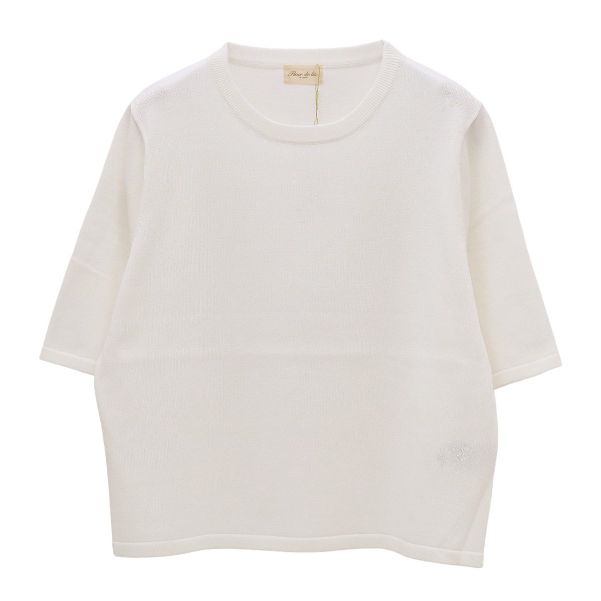 ショート丈クルーネック5分袖ニットトップス 01 ホワイト【Fleur de lis(フラデリ)】