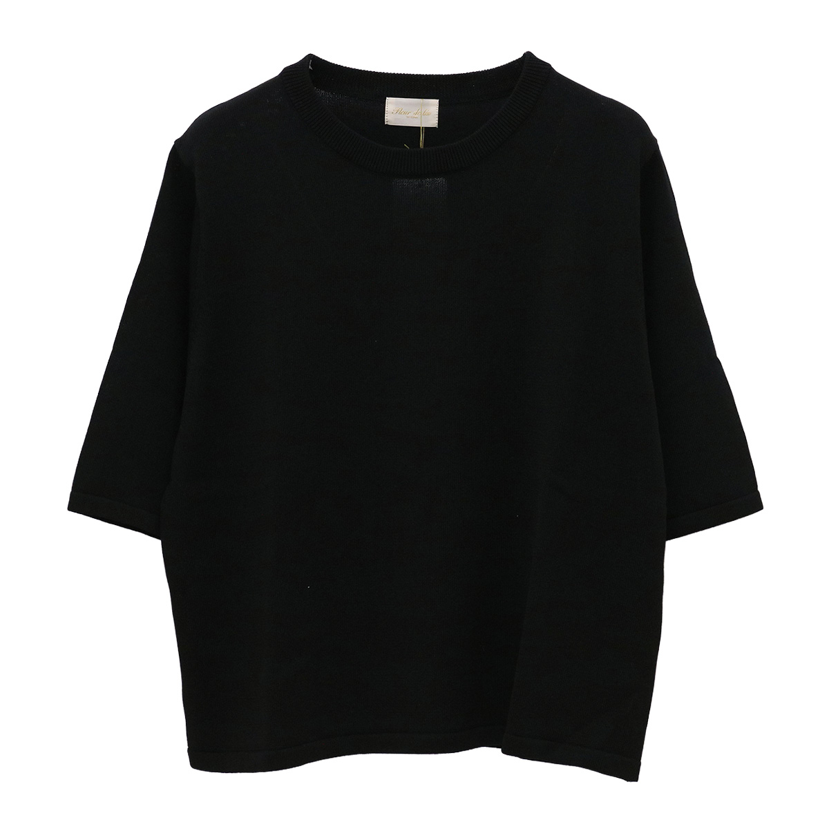 ショート丈クルーネック5分袖ニットトップス 19 ブラック【Fleur de lis(フラデリ)】