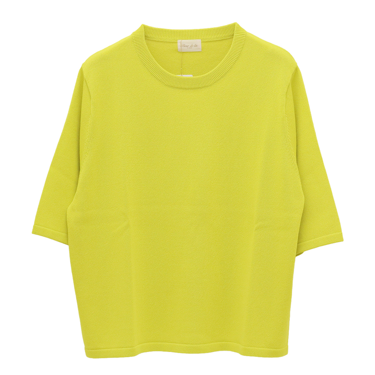 ショート丈クルーネック5分袖ニットトップス 23 イエロー【Fleur de lis(フラデリ)】
