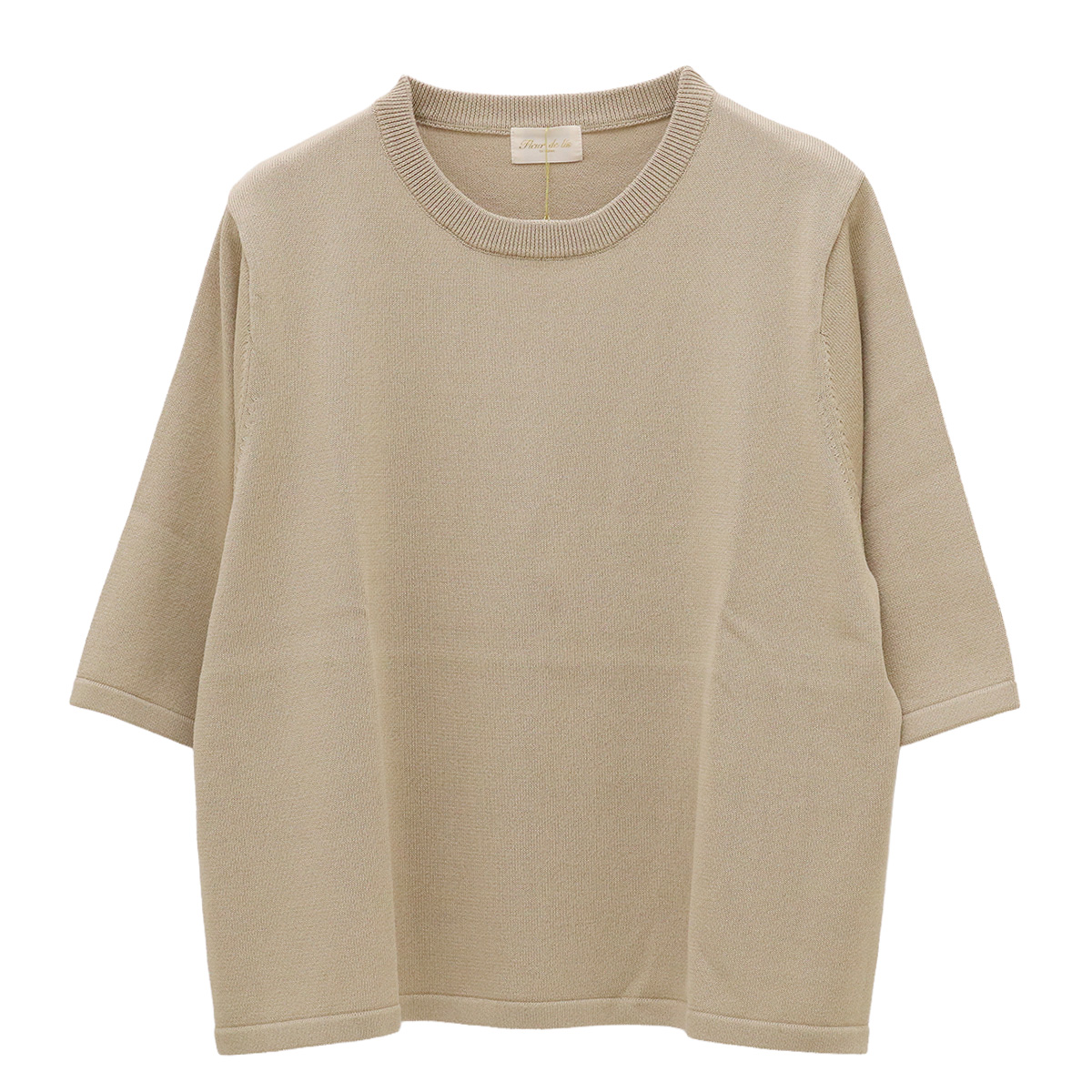 ショート丈クルーネック5分袖ニットトップス 51 ベージュ【Fleur de lis(フラデリ)】
