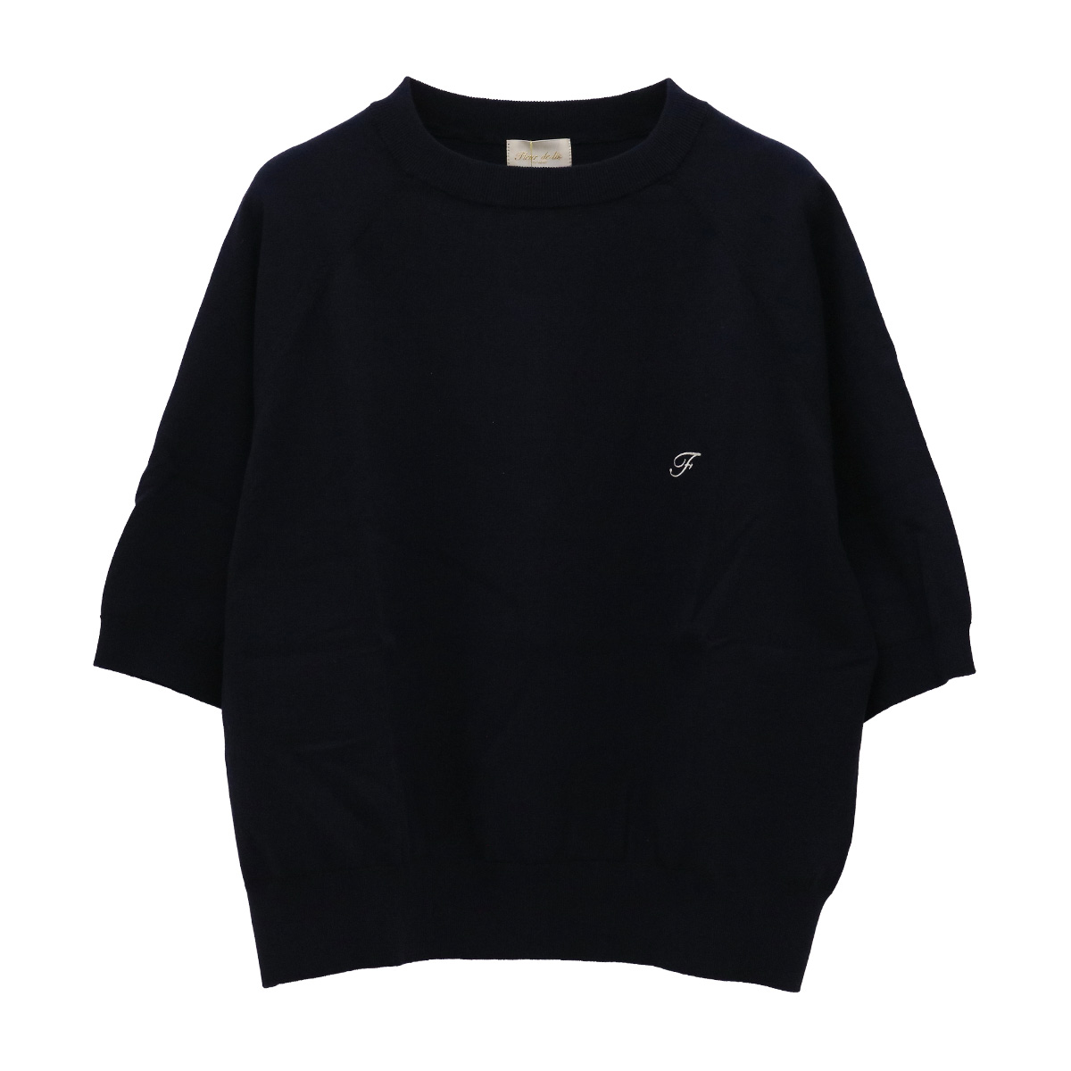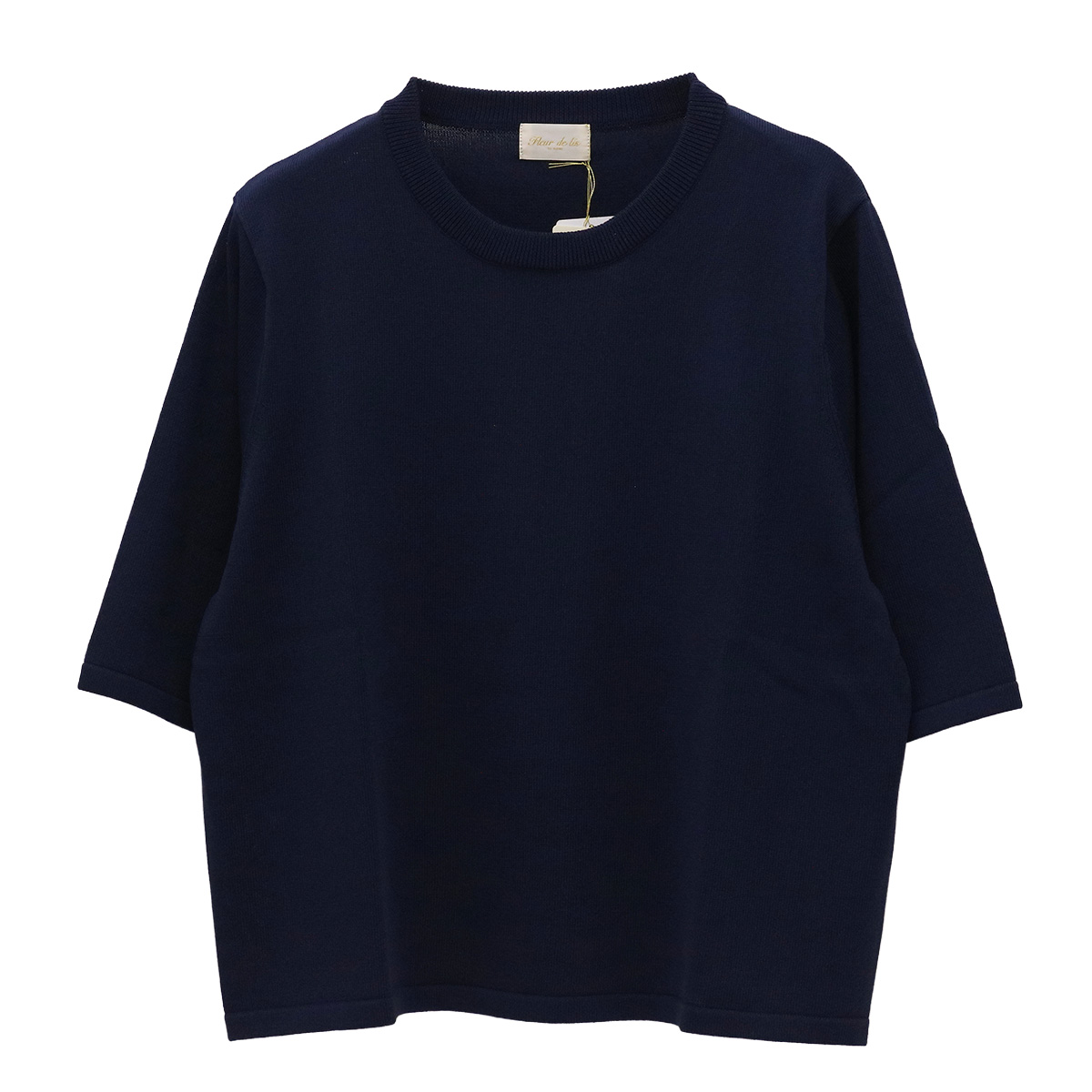 ショート丈クルーネック5分袖ニットトップス 91 ネイビー【Fleur de lis(フラデリ)】