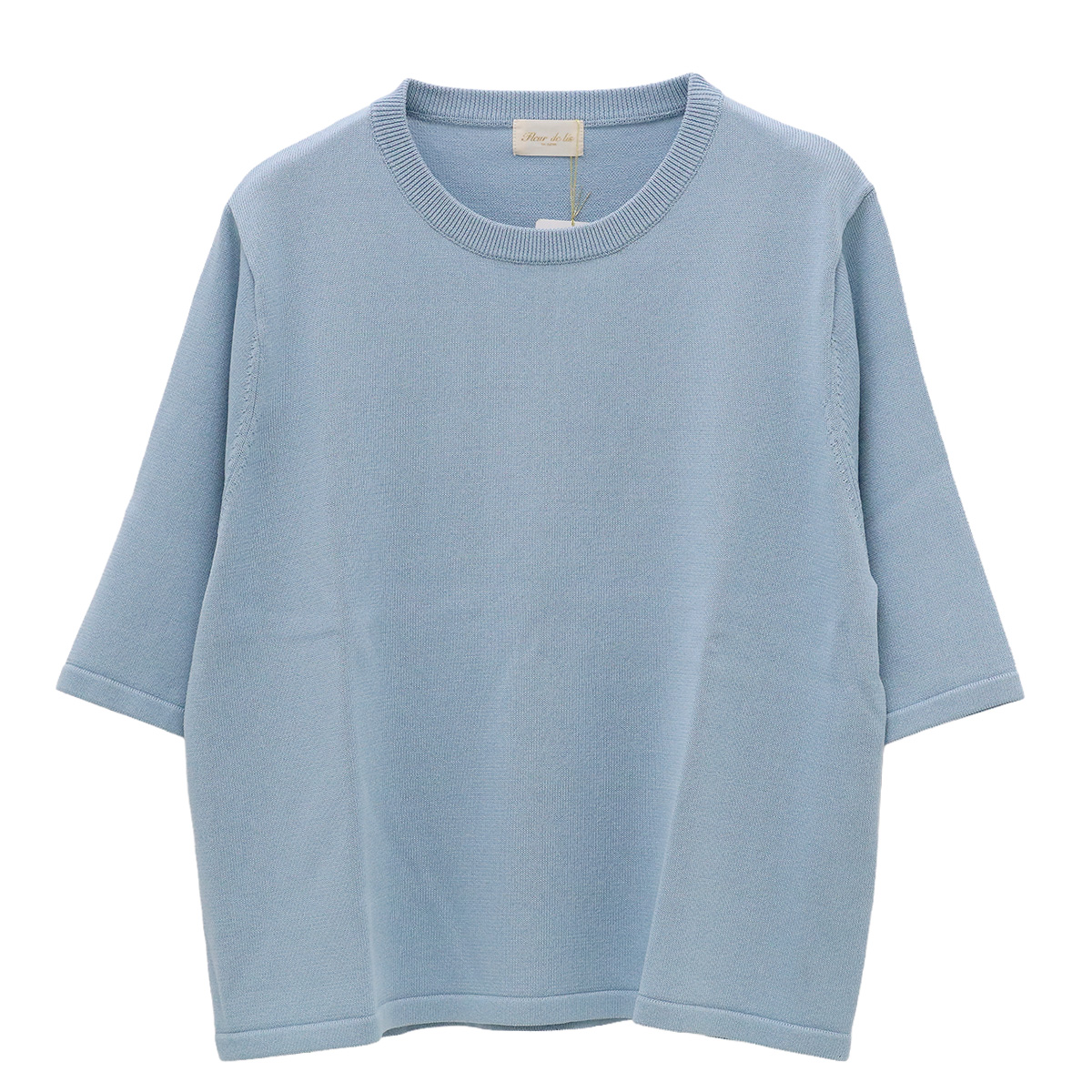 ショート丈クルーネック5分袖ニットトップス 92 ライトブルー【Fleur de lis(フラデリ)】