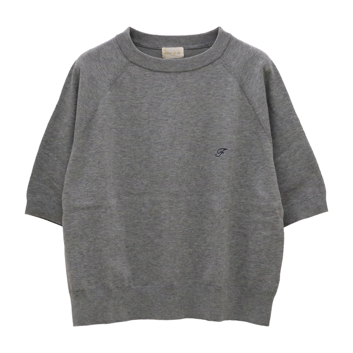 コットン混クルーネックラグラン5分袖ニットトップス 16 グレー【Fleur de lis(フラデリ)】
