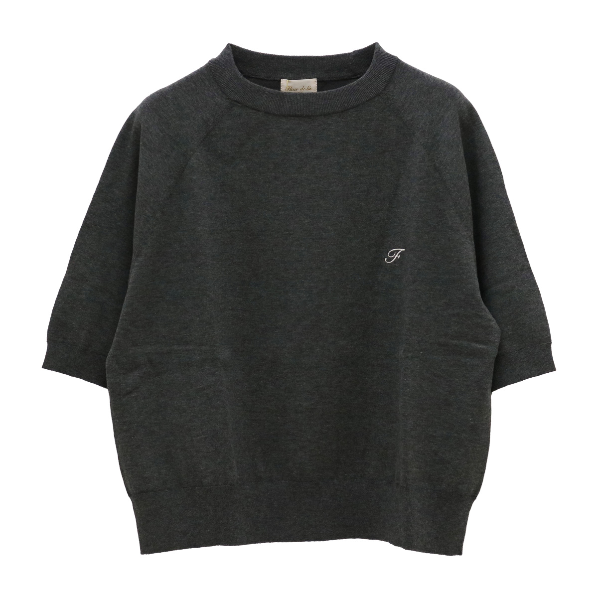 コットン混クルーネックラグラン5分袖ニットトップス 18 チャコールグレー【Fleur de lis(フラデリ)】