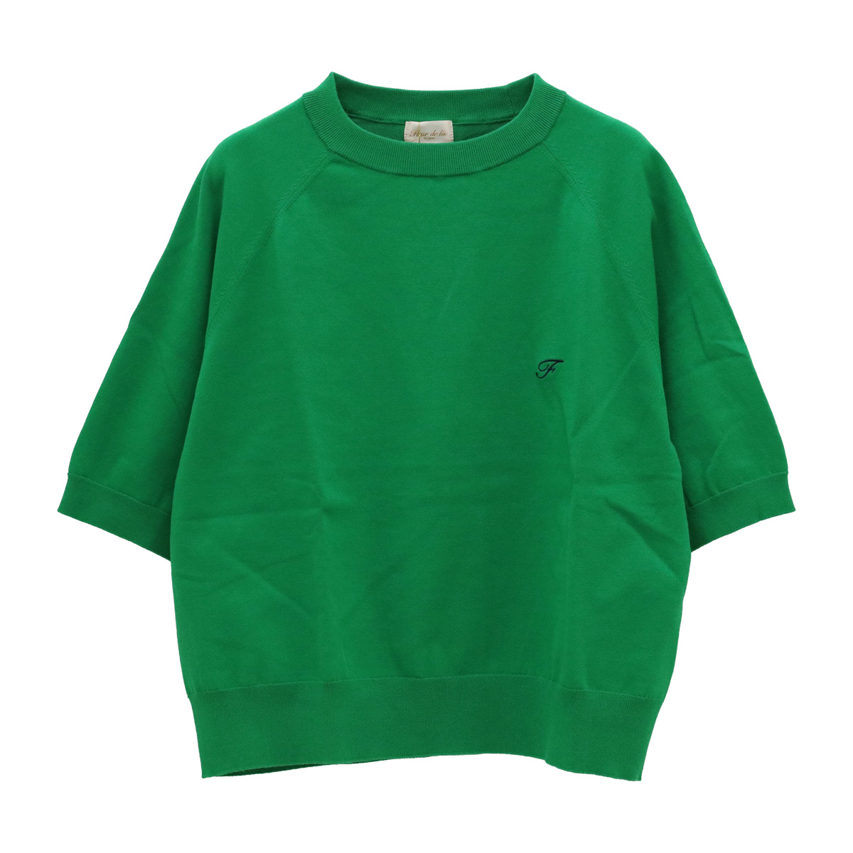 コットン混クルーネックラグラン5分袖ニットトップス 25 グリーン【Fleur de lis(フラデリ)】