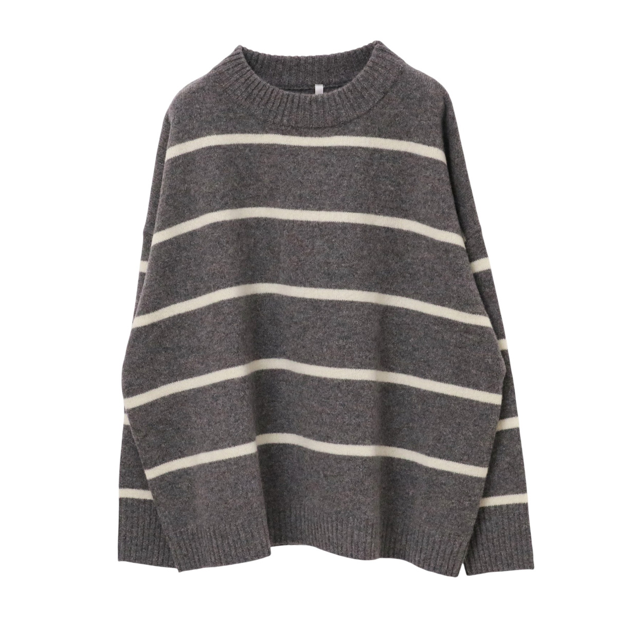 ウォッシャブルウールボーダーニット 02 グレー×オフホワイト【Dignite collier(ディニテコリエ)】