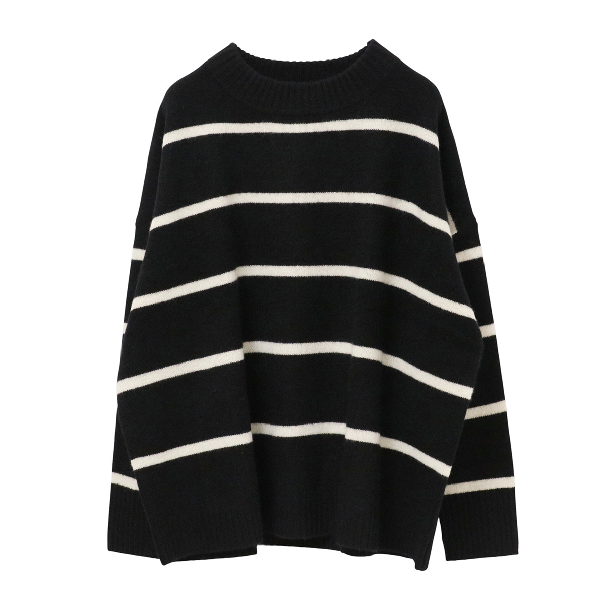 ウォッシャブルウールボーダーニット 04 ブラック×ホワイト【Dignite collier(ディニテコリエ)】