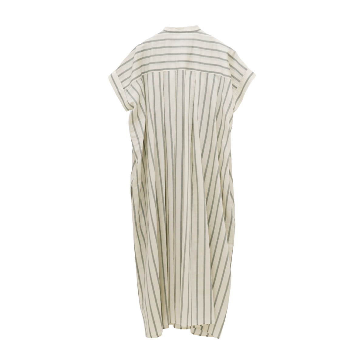バンドカラータックストライプシャツワンピース GRN グリーンシックシンストライプ【Squady(スカディ)】