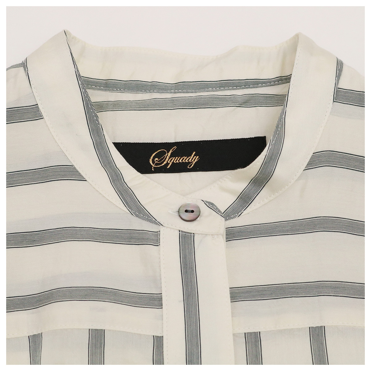 バンドカラータックストライプシャツワンピース GRY グレーストライプ【Squady(スカディ)】