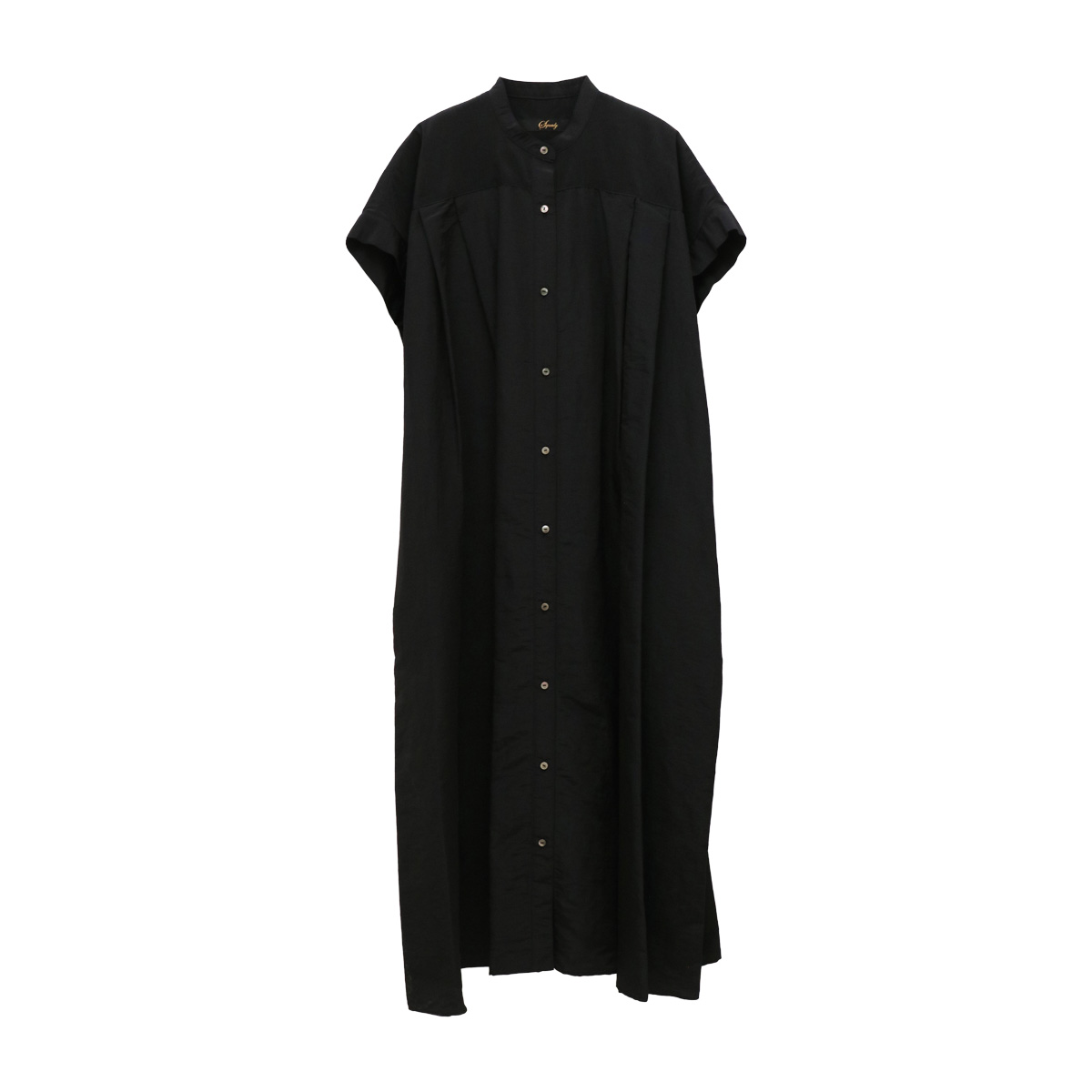 リネン混バンドカラータックシャツワンピース BLK ブラック【Squady(スカディ)】