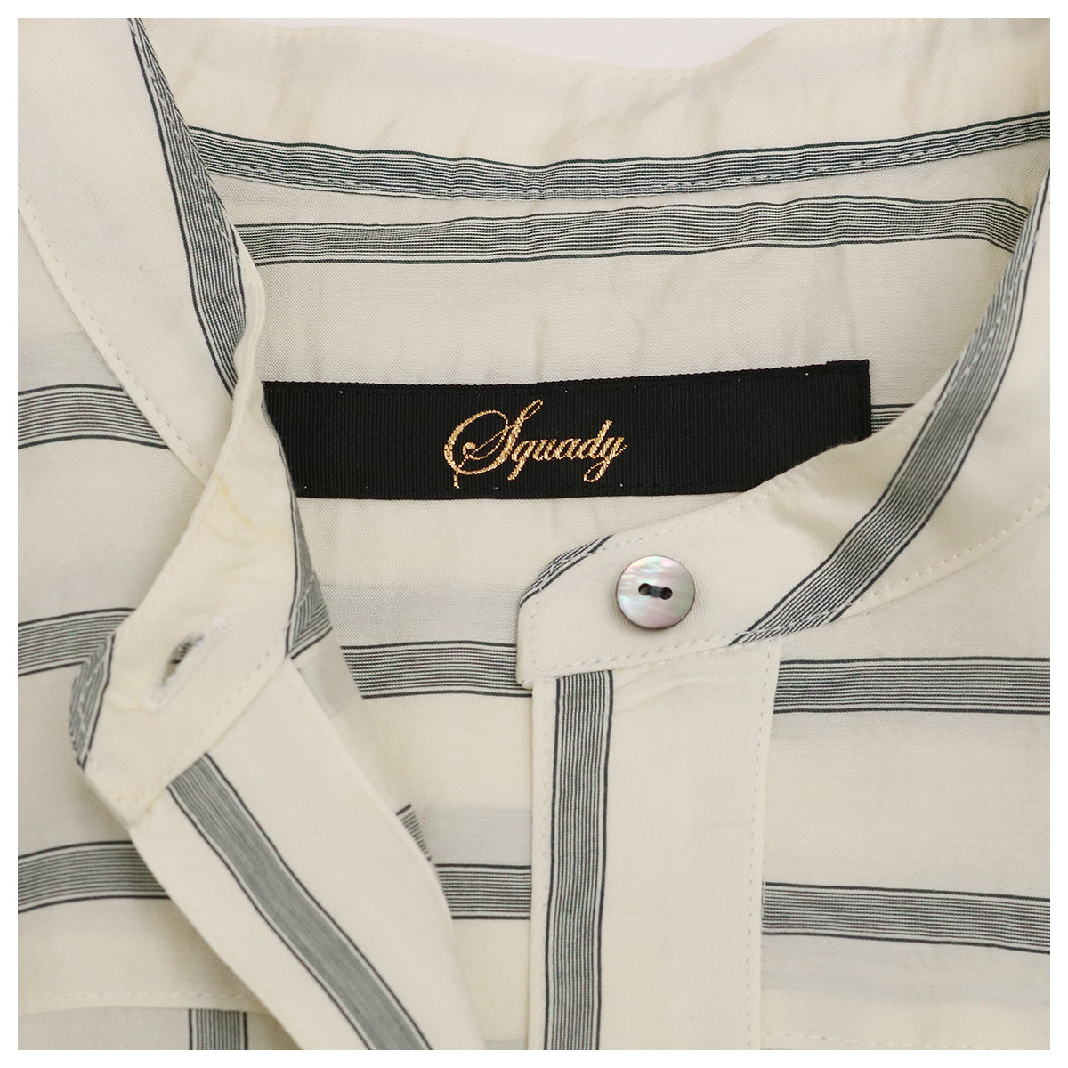 バンドカラータックストライプシャツワンピース GRY グレーストライプ【Squady(スカディ)】