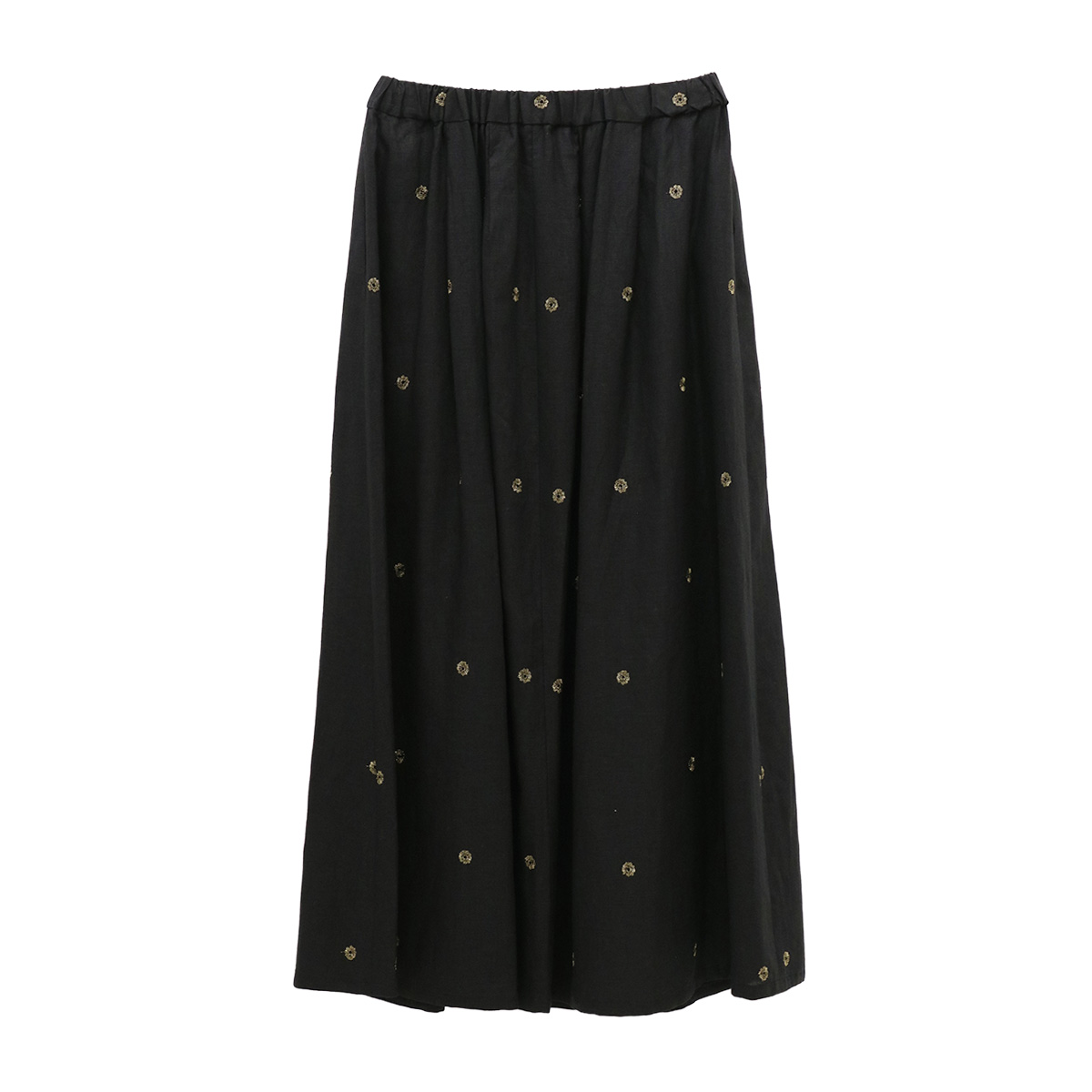 リネン刺繍タックフレアスカート BLK ブラック【Squady(スカディ)】