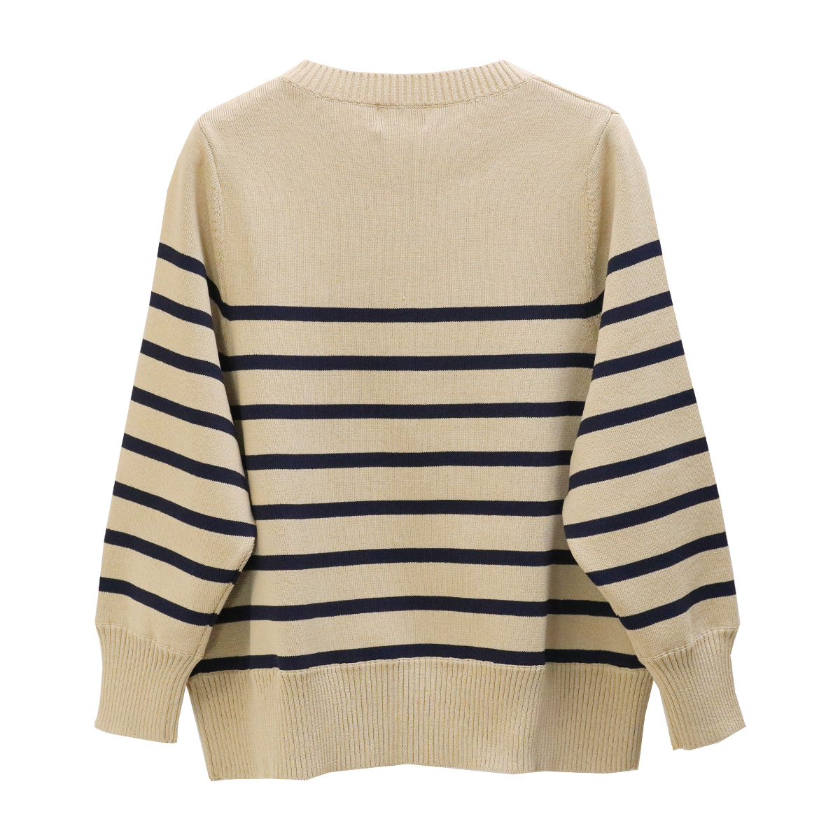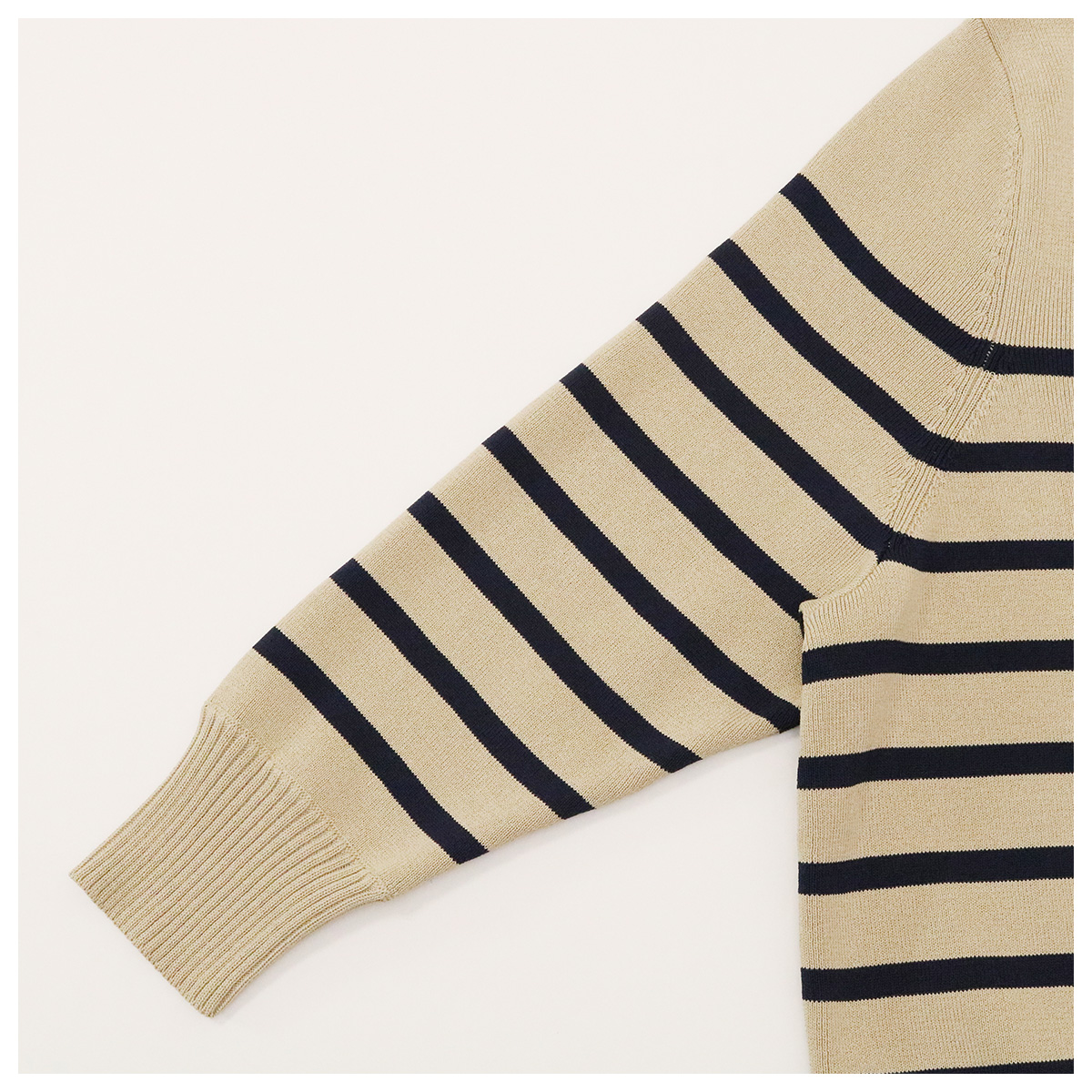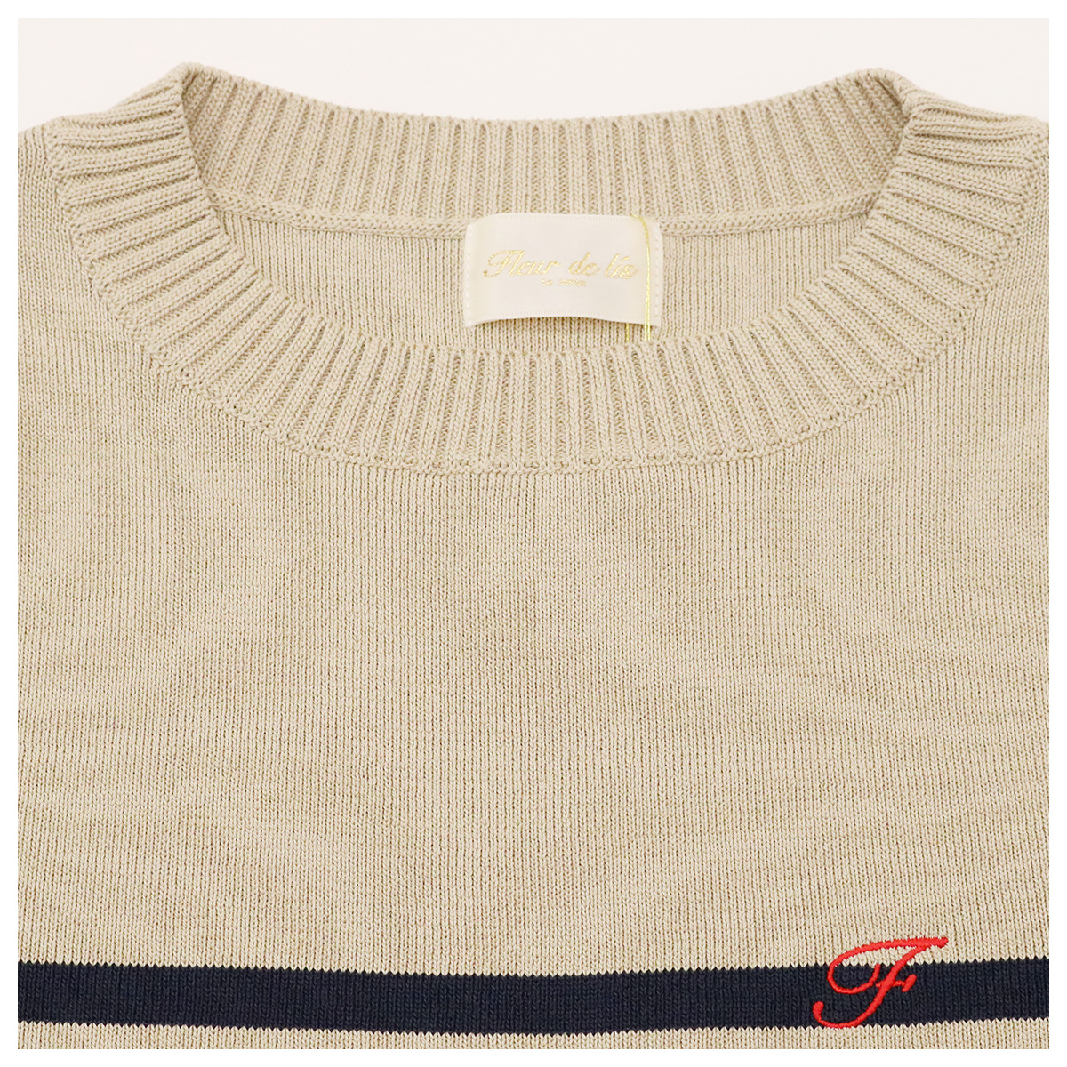 クルーネック7分袖ボーダーニットトップス 01×91 ホワイト×ネイビー【Fleur de lis(フラデリ)】